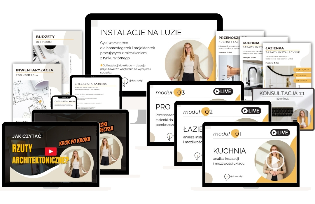 Ten kurs powstał z myślą o osobach, które pracują z mieszkaniami z rynku wtórnego i chcą pewniej podejmować decyzje dotyczące układu, kuchni, łazienki i instalacji — bez zgadywania i bez stresu.